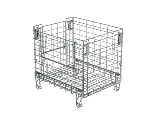 Mini conteneur grillagé utilisé pour le stockage de produits divers.
